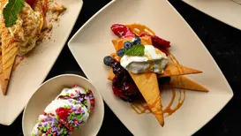👑 Comida: Durante el desayuno encontrarás opciones como huevos, tocino, papas, french toast, fruta y más. En la comida y la cena, el menú incluye ensaladas, cortes de carne, mariscos y postres icónicos, como el famoso "The Clock Strikes Twelve", una tarta de ganache de chocolate cubierta con mousse de café y caramelo salado.